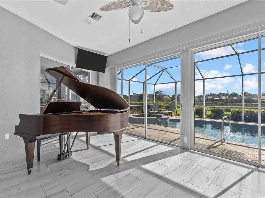 Luxury Home with Spectacular Water and Golf Views 3 Bedrooms • 2.5 Baths • Den & Office • 3-Car Garage • Saltwater Pool & Spa Includes Transferable Golf Membership Experience the pinnacle of Florida living in this beautifully updated home located in the exclusive, member-owned Venice Golf & Country Club — a private, gated community known for its warm hospitality, elegant homes, and championship golf course setting. Step into a world of luxury and comfort. This spacious 3-bedroom, 2.5-bath residence with a den, office, and full 3-car garage offers one of the best lake views in the entire community. Enjoy your morning coffee from the inviting front porch as golfers tee off nearby, then enter through double doors into a light-filled great room that opens to sweeping water and fairway vistas. Highlights & Features Open, airy floor plan with vaulted ceilings, surround sound, and two 3-panel sliding glass doorsacross the back for seamless indoor-outdoor living Skylit kitchen with modern finishes and abundant natural light Saltwater pool and spa with remote-controlled heating and cooling Propane fireplace for cozy Florida evenings Expansive lake and golf views from the lanai, kitchen, living room, primary suite, and den Resort-Style Living & Immediate Golf Access Skip the waiting list — this home includes a transferable golf membership granting full access to the 18-hole championship course, state-of-the-art wellness center, Har-Tru tennis courts, bocce, and a vibrant calendar of social clubs and community events. The Clubhouse and Bar offer both fine and casual dining, creating the perfect gathering place after a day on the course or courts. Most of all, you’ll love the friendly, welcoming residents who make Venice Golf & Country Club such a special place to call home.