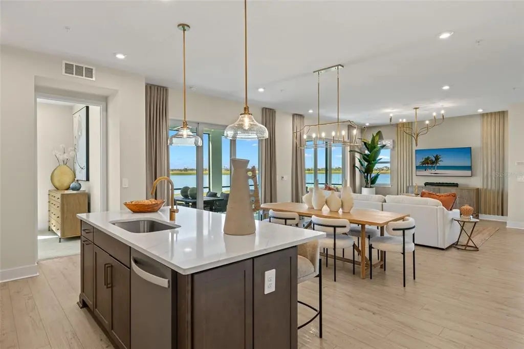 The Acacia is a luxurious 1,904 sq. ft. coach home designed for comfort and elegance. This first-floor residence features a coastal-inspired exterior and impact-resistant windows, blending style with security. Inside, the open-concept floor plan with 9'4" ceilings seamlessly connects the great room, dining area, and executive kitchen. The kitchen is a true focal point, showcasing a cooktop, wall oven, and soft-close cabinetry. A modern take on shaker style is reflected in the 42" upper cabinets in bright white, beautifully contrasted by soapstone quartz countertops. Satin nickel hardware complements the appliances, while a unique tile backsplash in a random linear pattern adds visual interest. All appliances are included, including an ENERGY STAR® certified refrigerator. The layout offers clear sightlines from the kitchen to the dining and great room, creating an ideal space for entertaining. Two triple-slider glass doors open to an expansive, screened lanai, providing a seamless indoor-outdoor living experience for year-round enjoyment. The oversized owner's suite is a private retreat, featuring a spacious walk-in closet and a spa-like en suite with a dual-sink raised vanity, glass-enclosed shower with bench seat, comfort-height elongated toilet, and premium finishes. The room easily accommodates a king-size bed, nightstands, dresser, and more. A second bedroom offers privacy for guests, with an adjacent full bath. The study, located just off the great room, provides a flexible space for formal living, a home office, or whatever your lifestyle calls for. The laundry room, positioned near the garage, includes an ENERGY STAR® washer and dryer. A thoughtfully placed powder room and a spacious two-car garage complete this stunning home. Smart home features include an Alexa-enabled thermostat, ClareOne touchpad control, electric smart lock with deadbolt, and a voice-enabled video doorbell. * Photos, renderings and plans are for illustrative purposes only and should never be relied upon and may vary from the actual home. Pricing, dimensions and features can change at any time without notice or obligation. The photos are from a furnished model home and not the home offered for sale.