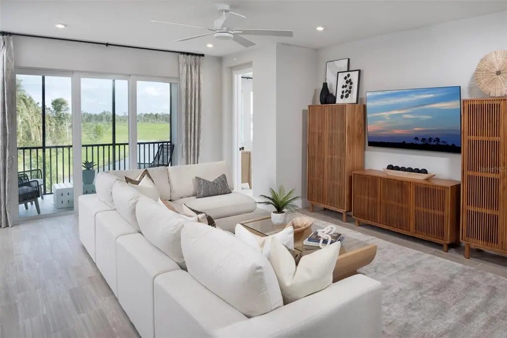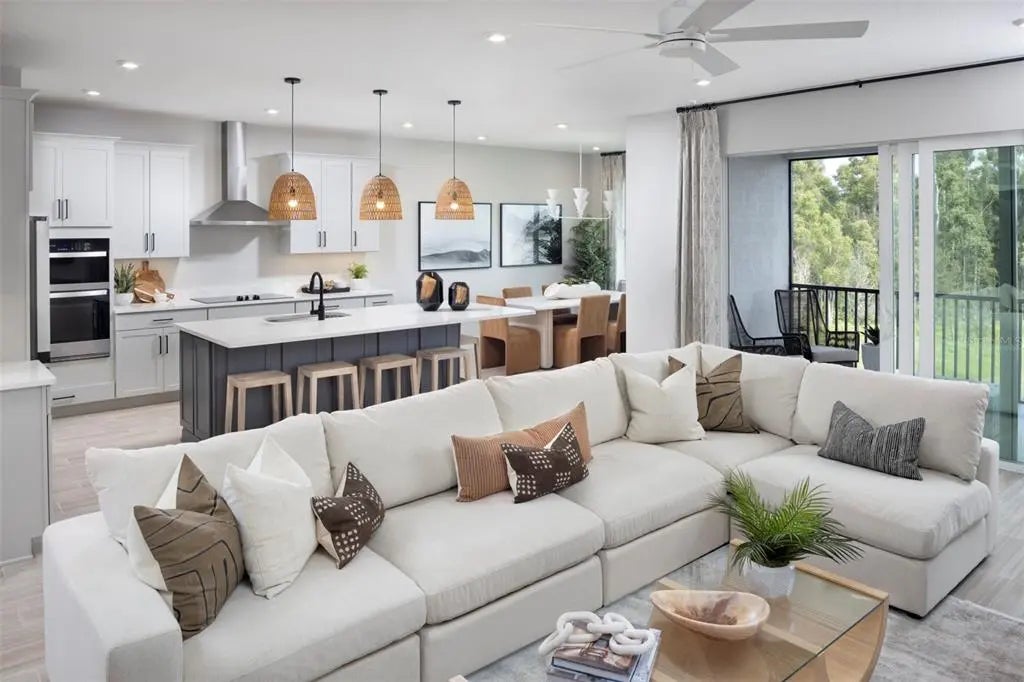 The Oceangrove II plan is the largest coach home available in the community with 2 bedrooms, 2 baths, a study, a 2-car garage, and condominium ownership. This open floorplan offers optimized living spaces and is perfect for entertaining guests for a few hours or days. The entrance of this home features a welcoming covered entry or convenient owner's garage access. The main living area is just up the stairs. The designer kitchen is adjacent to the dining area and Great Room. It features an island with a breakfast bar that will seat up to 5, cooktop with stainless vent hood and wall oven/micro combo. A covered balcony is located just outside the Great Room and provides the opportunity to enjoy the beautiful Florida weather and air. The primary suite is a quiet retreat with a well-appointed primary bath and walk-in closet. The study includes a closet and provides a versatile space for a home office, den or 3rd bedroom. Stylish shaker style cabinets in Purestyle White and Carrara Breve quartz countertops throughout. Featuring Clare's Smart Home Technology package that connects to video doorbell, garage door and front door lock. ***Photos, renderings and plans are for illustrative purposes only and should never be relied upon and may vary from the actual home. Pricing, dimensions and features can change at any time without notice or obligation. The photos are from a furnished model home and not the home offered for sale.