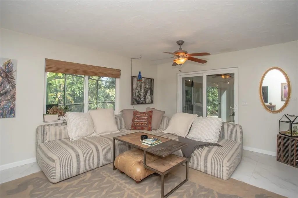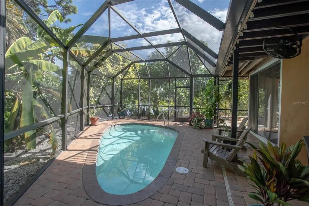Under contract-accepting backup offers. Your coastal retreat awaits at this lakefront Venice pool home! You’ll love all the Florida vibes in this two-bedroom, two-bath home, complete with two-car garage and oversized lot! Enter inside to find an expansive living space with lots of layout options to fit your needs. The kitchen is ideal for those who love to cook and entertain. It features a gas cooktop, updated appliances, stone countertops with beautiful cabinetry and island. The space easily flows through to the attached dining room, which could also be used for more seating, and then connects to the large living room, providing the ideal setup for entertaining and hosting dinner parties. With sliders off the kitchen and the living room that lead to the huge Florida room, your options are endless. The Florida room is the ideal place to lounge and look out over the lake and tropical landscape. Go out to the screened lanai and relax in your heated, saltwater pool with a beautiful brick paver deck. You’ll enjoy gorgeous water views from every angle and every window along the back of the house. The downstairs bath features an updated, walk-in tile surround shower and inside utility room. Upstairs, you’ll find two generously sized rooms and another updated bath. Both rooms enjoy access to an upstairs rooftop balcony where you can watch the sky change colors over the water. On a large lot, you’ll find a meticulously crafted landscape that includes avocado and lime trees, hardscaping and other tropical vegetation that makes it the picture-perfect setting to recline lakeside. fully paid off solar panels keep your utility bills low. New water heater and interior steel door with battery locks to the garage. No flooding from last year’s storm season, according to the owner, and hurricane-rated windows to make you feel safe and secure. This home has everything you need to simply move right in and start enjoying that Florida lifestyle. Minutes from waterfront parks and Venice beaches, you’ll have easy access to lots of local shops and dining and outdoor activities. Schedule your private tour today.