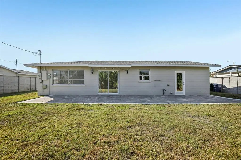 One or more photo(s) has been virtually staged. Imagine starting your day just ten minutes from the gentle waves of Manasota Beach or vibrant Venice Beach! This charming 3-bedroom, 2-bath home is truly move-in ready. You’ll love the seamless look of the tile flooring flowing throughout the entire space, making cleaning up after a beach day super simple and stylish. The updated kitchen is a delight, featuring a new sink and dishwasher, and it offers a lovely view of your tropical backyard oasis. Step outside through the dining area's sliding glass door onto your newly installed paver patio. Surrounded by lush, tropical trees—hello, banana trees! This outdoor space is perfect for entertaining friends or leaves plenty of room for a future pool. Plus, you get freedom and peace of mind here: this well-maintained home is in an X Flood Zone (so no flood insurance is typically required) and has absolutely no HOA restrictions! With a new roof (August 2025) and a garage sporting an epoxy-coated floor and a glass door looking out back, the big-ticket items are already handled. The fantastic location near the Legacy Trail and the Venice Gardens Civic Association simply can’t be beat. This is your chance to grab this unbeatable location!