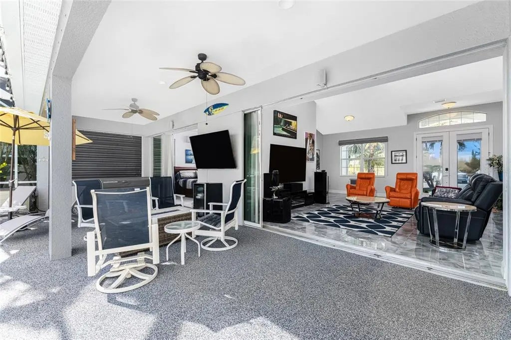 Direct lagoon-front with sweeping, unobstructed water views, true sailboat water, and no speed restrictions to the harbor. No homes across the water—rare privacy at its finest. An extensive 18-month renovation was just completed, leaving no detail overlooked. Nearly every element has been replaced or upgraded, from the new roof to the brand-new pool light, complemented by fresh interior and exterior paint. Vaulted ceilings, expansive porcelain tile floors, and quartz countertops create a sophisticated, coastal-modern interior. The primary suite is a showpiece with three walk-in closets, including a dedicated shoe closet. Outdoor living shines, featuring a brand-new rubber-coated pool deck, 6-person hot tub, and outdoor shower, framed by maintenance-free artificial turf and a private dog run. Oversized two-car garage with abundant storage. This home has never flooded and sits above the flood plain. Truly a rare, turnkey waterfront offering—see attached for complete list of improvements.