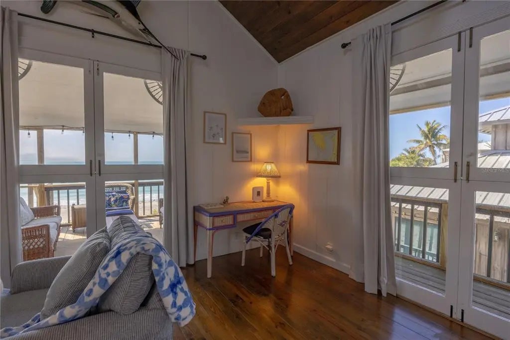 A Classic Beachfront Escape on Little Gasparilla Island! This timeless beachfront cottage offers the best of island living — with the Gulf of Mexico at your front door, 50 x 200 lot, and a community dock on the Bay side! This charming beach getaway is perfectly positioned for ultimate convenience, with effortless beach access. This beloved vacation home has welcomed generations of guests who return time and time again for its nostalgic charm, unbeatable location, and relaxing atmosphere. Inside the Cottage you are greeted by a Spacious Living & Dining Area – Bright and open with a stunning Gulf view, a spacious Kitchen – Outfitted with stone countertops, all the essentials including cookware, dishes, and utensils. An island with seating creates a welcoming space for meals, conversation, and memory-making.*Modern Amenities – Includes a full-size washer and dryer for added convenience. Beach Access just steps away down a sandy pathway winds leading you to a breathtaking stretch of beach with turquoise waters, and miles of unspoiled shoreline.*Outdoor Shower – A convenient open-air rinse area located at the base of the stairs is ideal after a sun-soaked day on the beach or water. Whether you’re seeking a quiet retreat, a family beach vacation home, a fishing getaway, or an investment property, this property will not disappoint!.