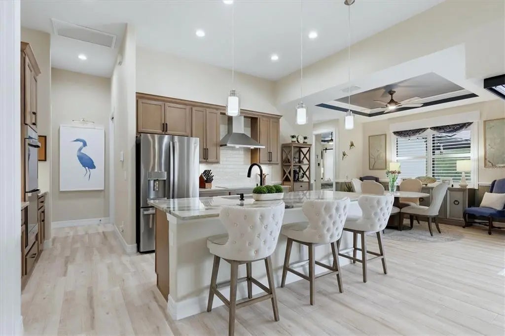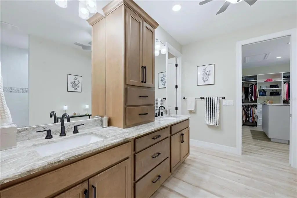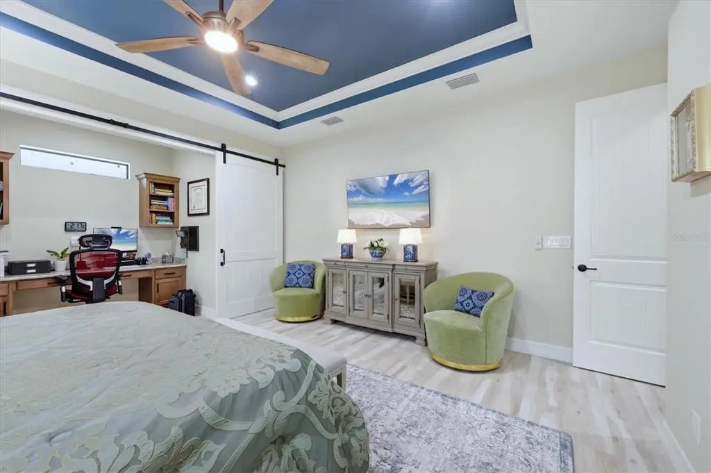 - Interior FeaturesCeiling Fan(s), Crown Molding, High Ceilings, Open Floorplan, Stone Counters, Thermostat, Tray Ceiling(s), Walk-In Closet(s), Wet Bar