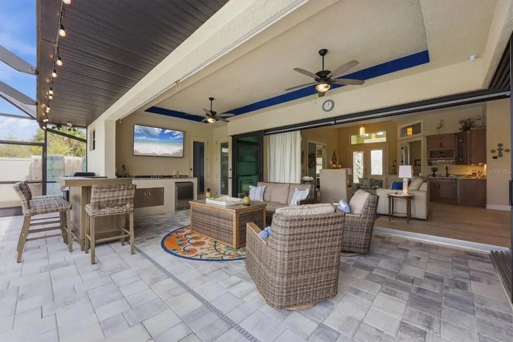 - Exterior FeaturesIrrigation System, Lighting, Outdoor Grill, Outdoor Kitchen, Private Mailbox, Rain Gutters, Sliding Doors